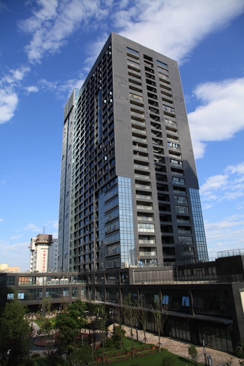 金域名都五期12#樓由主樓及地下室、沿街商業(yè)等組成,建筑總面積:59810.5平方米,其中地上51304.6平方米,地下8505.9平方米。其中商業(yè)建筑面積為8319.7平方米, 辦公建筑面積為42828.3平方米,主樓部分地面以上為28層,裙樓部分為地面以上為2層,建筑最大高度95.55m,裙樓高度12.8m。地下室2層,基礎(chǔ)埋深約7m,分別為人防區(qū)和非人防區(qū)。人防工程防護(hù)等級(jí)為二個(gè)甲類(lèi)核六級(jí)、常六級(jí)二等人員掩蔽所,人防工程面積分別為1845平方米和1943平方米;一個(gè)物質(zhì)庫(kù),人防工程面積分別為2725平方米;一個(gè)人防柴油移動(dòng)電站。非人防區(qū)為地下車(chē)庫(kù)、庫(kù)房及設(shè)備用房。整個(gè)場(chǎng)區(qū)建筑群布置合理,高層建筑物為南北朝向,高度錯(cuò)落有致;最大限度拓展景觀視野;采光、通風(fēng)良好。