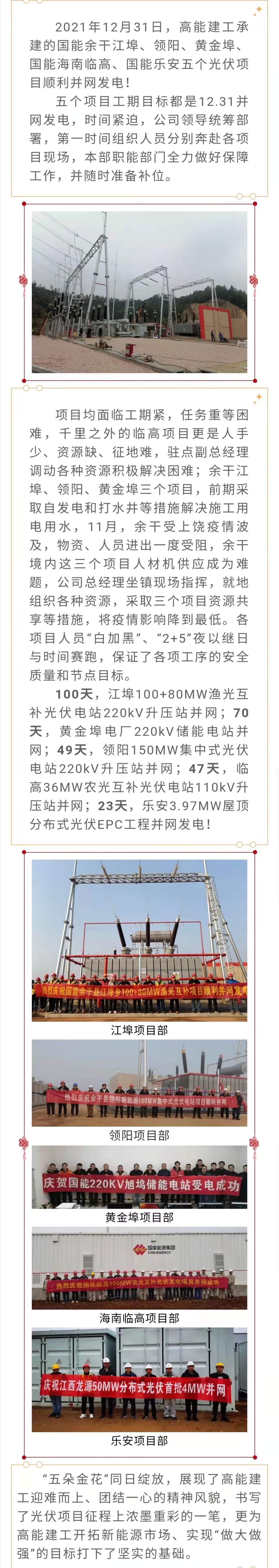 “五朵金花”迎寒綻放——高能建工五個(gè)光伏項(xiàng)目12.31順利并網(wǎng)發(fā)電