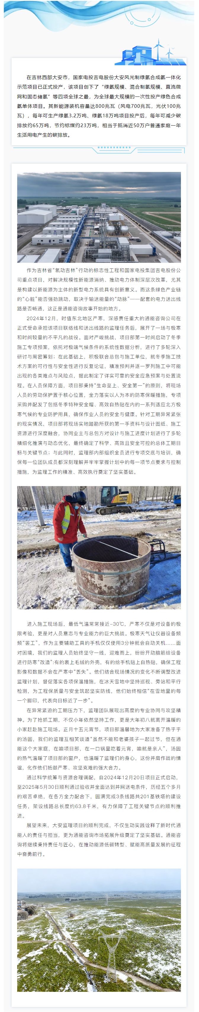 護航全球最大單體綠氫項目 助力東北能源轉(zhuǎn)型——通能監(jiān)理完成國家電投大安一體化示范項目線路送出工程